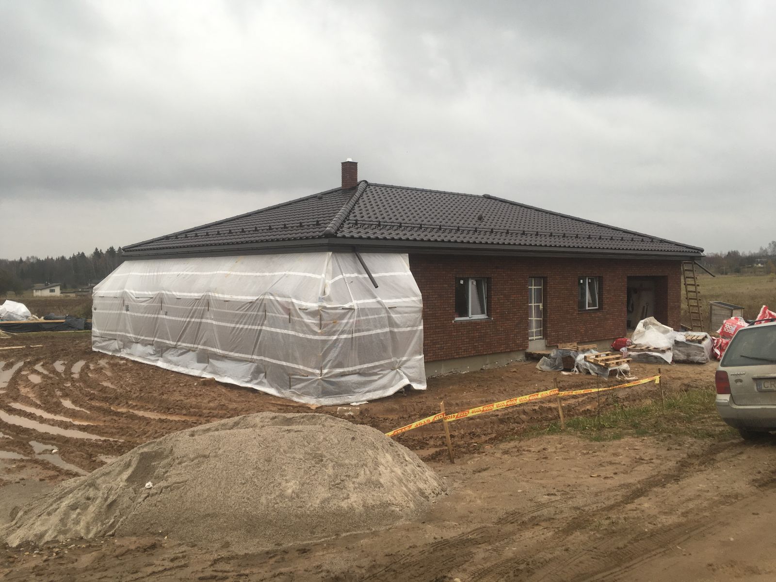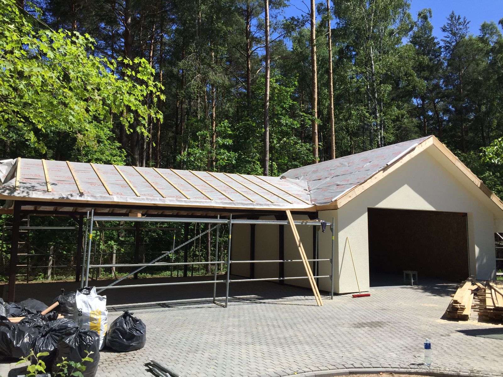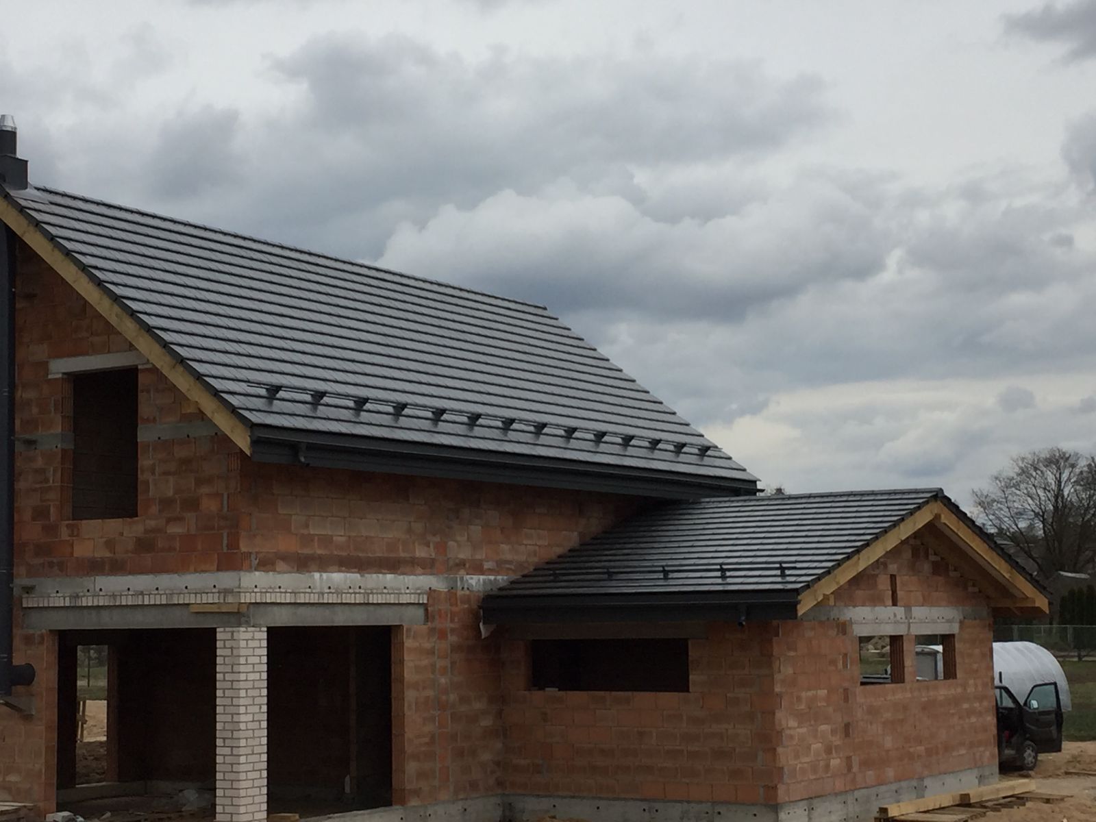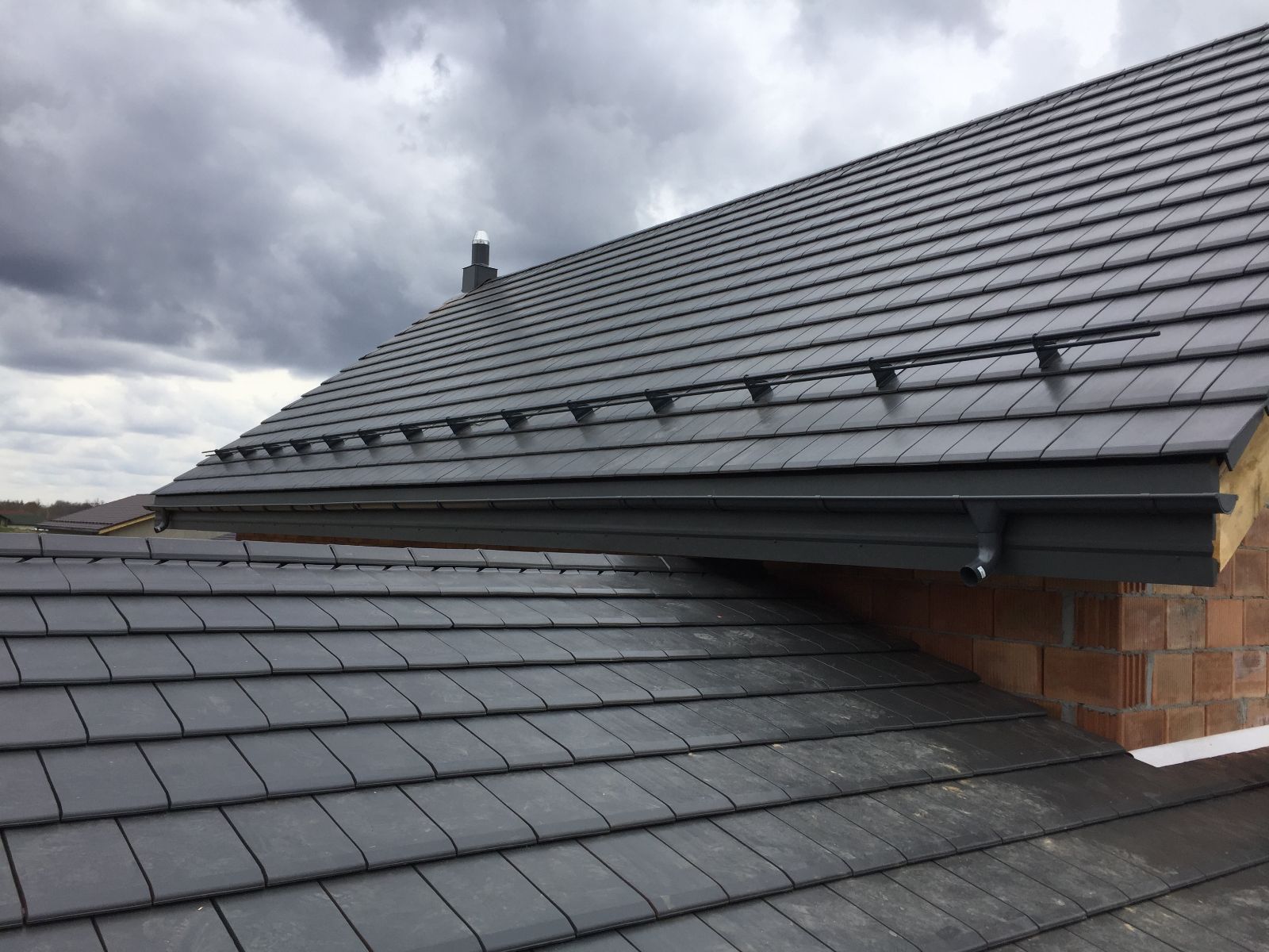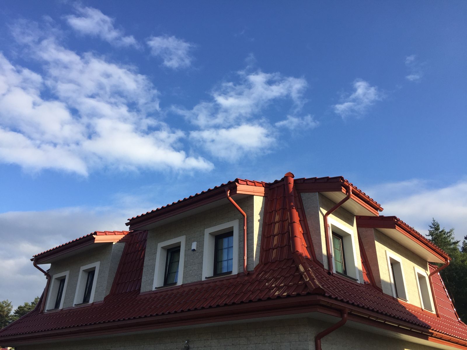 Apskardiname kaminus, montuojame stoglangius, lietaus vandens nuvedimo sistemas, atliekame pastogės apdailą dailylentėmis (pakalimą).